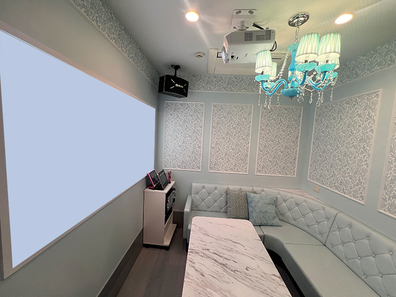 プロジェクタールームのほか、プロジェクターが2面のデュアルプロジェクタールームもあり、大迫力のカラオケをお楽しみいただけます。